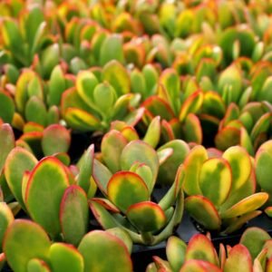 Jade is a tolerant grower that is ideal for novices and low-light environments, yet it can return to green when not exposed to the sun or heat. Pests, illness, deer, and neglect don’t have a chance against it. Simply provide it with well-draining soil, frost protection, and heavy watering when the soil is absolutely dry.