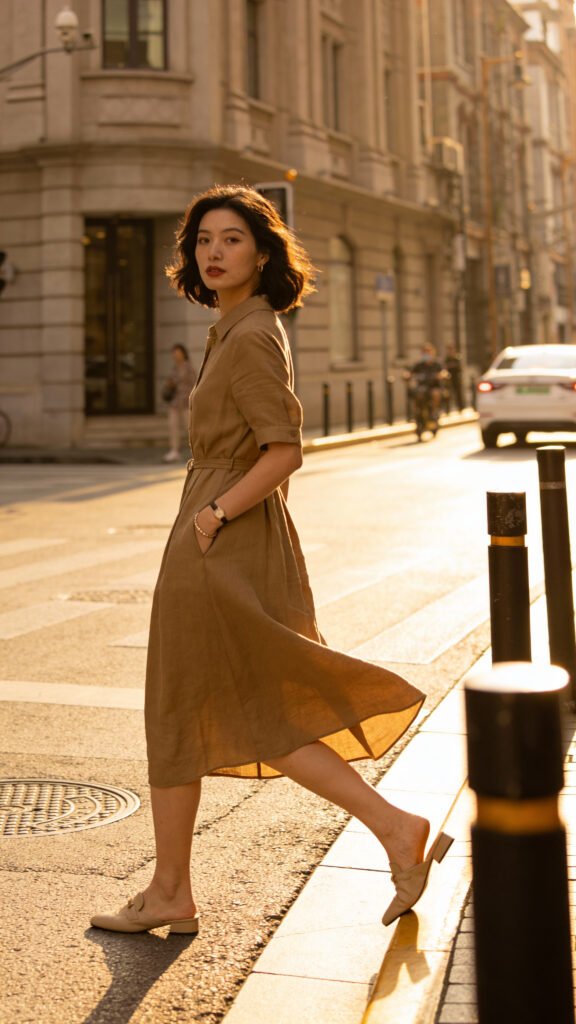 Fit matters more than anything with midi dresses. Pay attention to where the waist hits and how the skirt moves when you walk — comfort always shows.